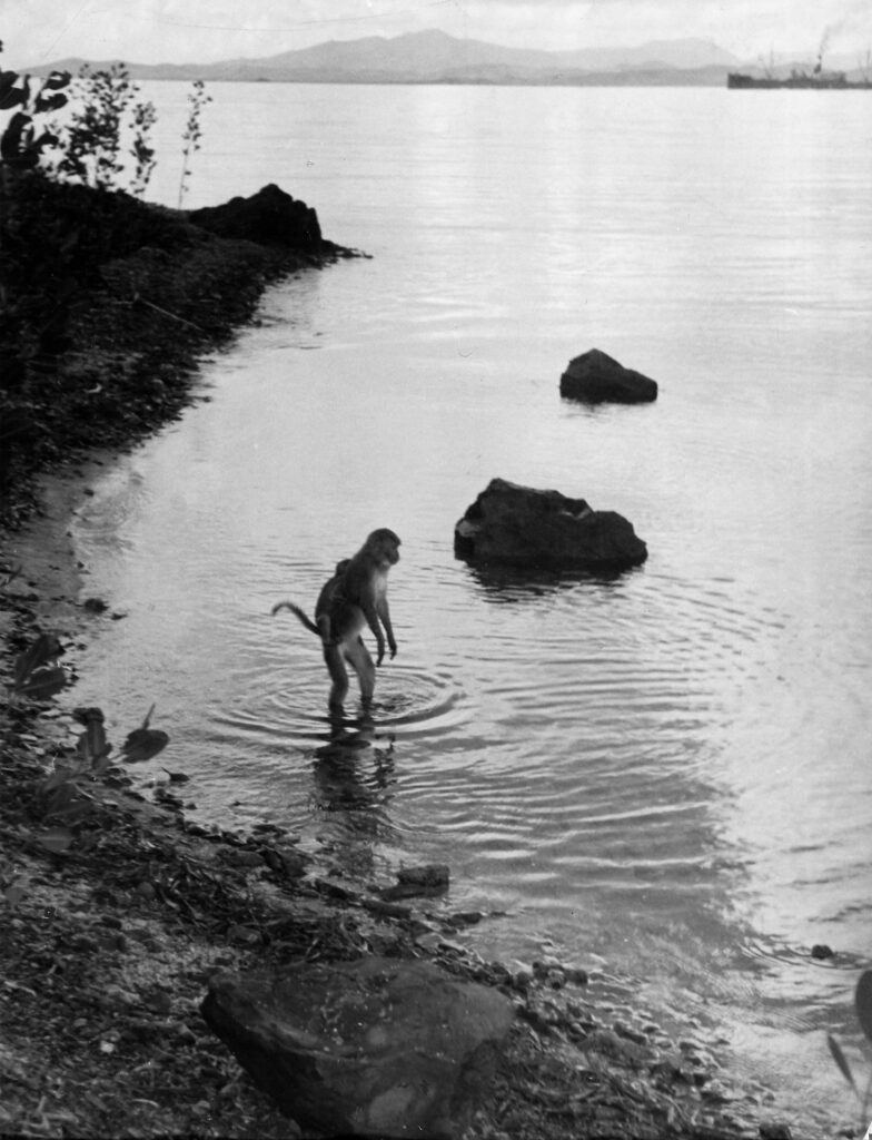 I came down, and that monkey was really going hell-bent for something. . . . I threw my Rolleiflex on my back and swam out. Finally, I was facing the monkey. I don’t think he liked me, but he sat on that coral reef, and I took about a dozen shots.