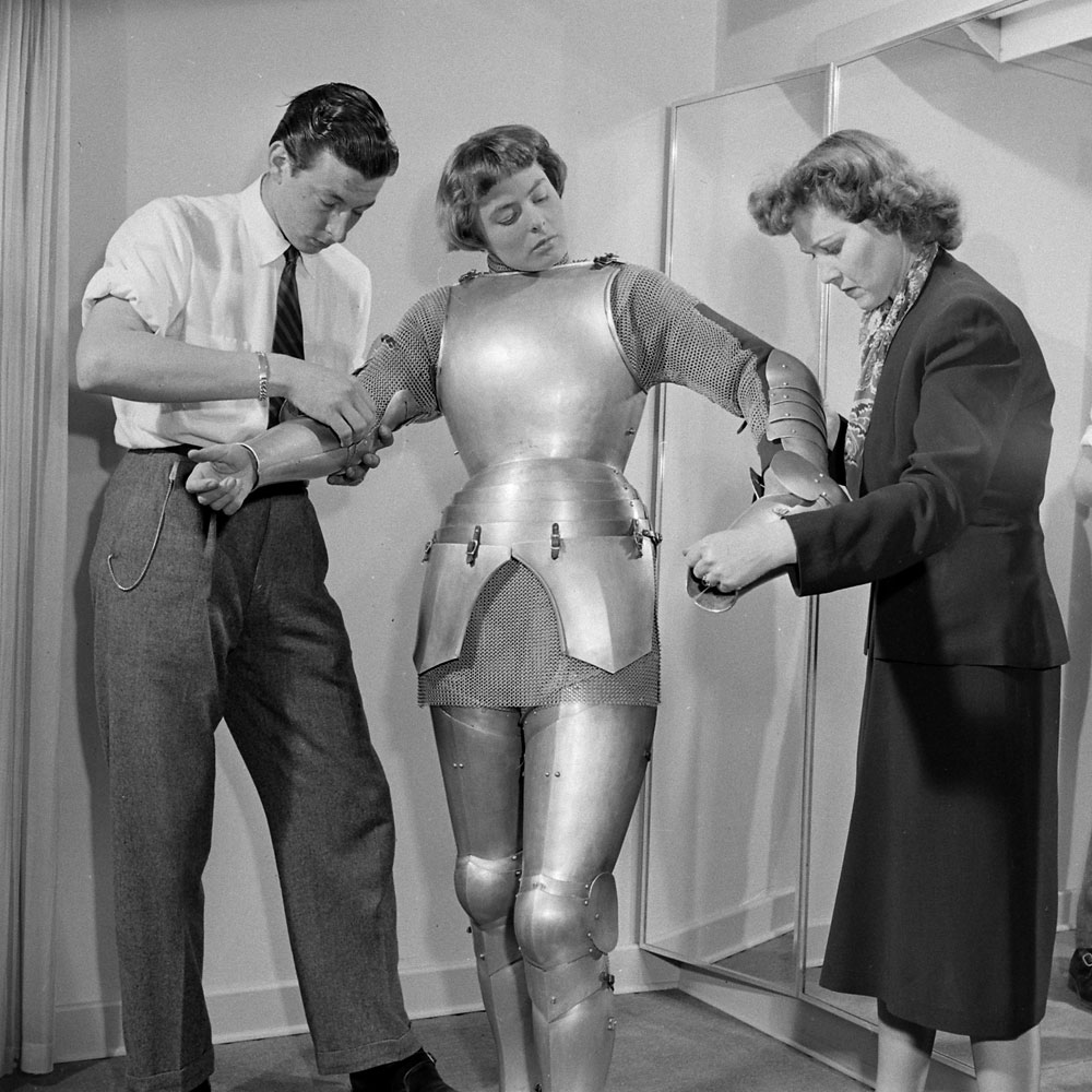 Ingrid Bergman dresses as Joan of Arc in the Broadway production of Maxwell Anderson’s 1946 play, Joan of Lorraine, for which Bergman won a Tony.