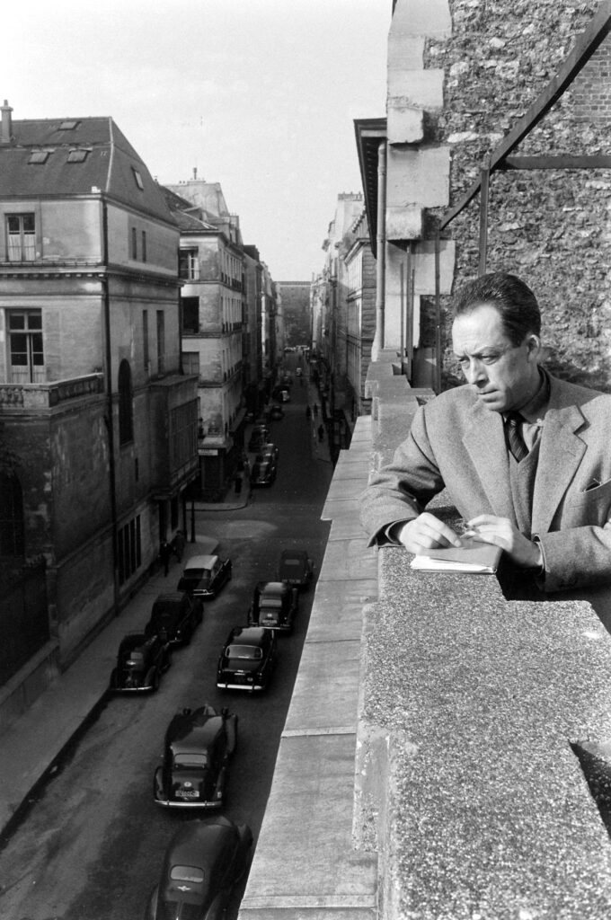 In the original story the image of Camus on the balcony ran with this quote from him: “I don’t like to work sitting down. I like to stand up—even at my desk. I probably need to wear myself out.”