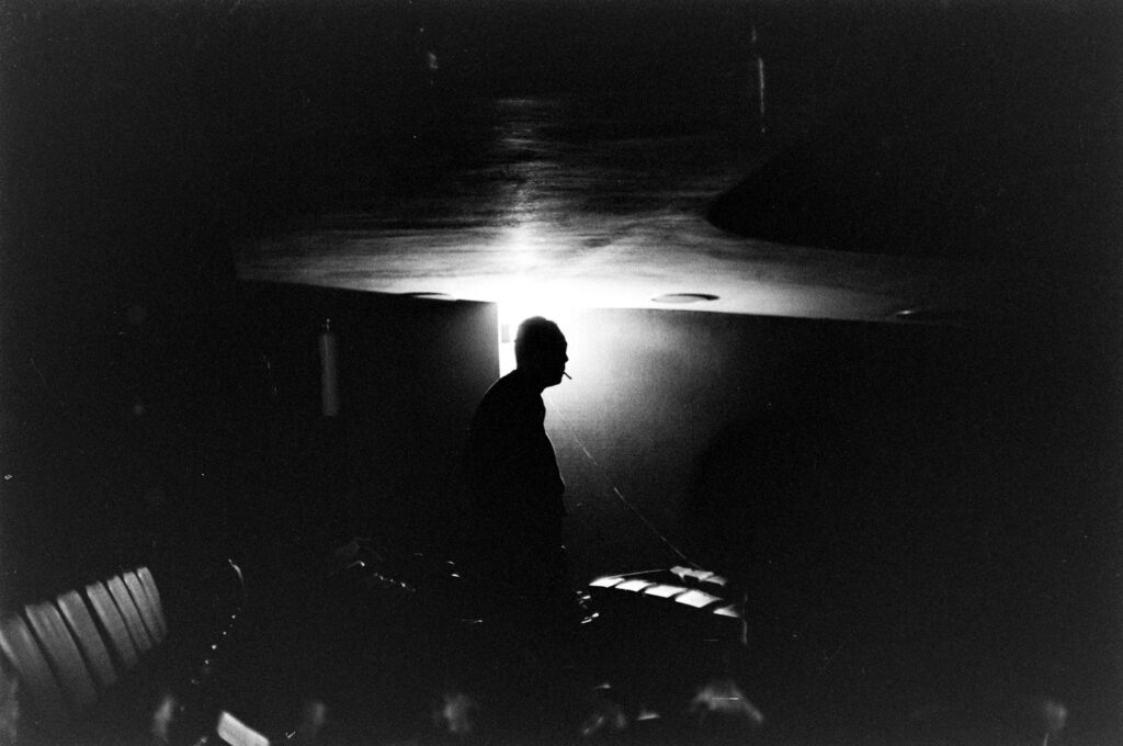 Albert Camus smoked a cigarette outside Theatre des Mathurins, where the rehearsals of his play Caligula were taking place, 1957.